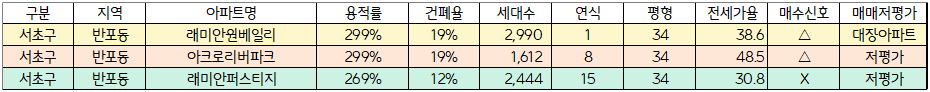 1. 서초구 30% 이내 아파트의 현재 전세가율과 저평가아파트를 확인하겠습니다