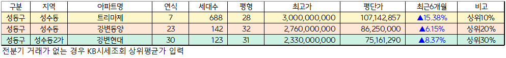 2. 트리마제를 기준으로 그 외 아파트의 과거와 현재 매매가격을 비교하여 현재 매매가의 저평가 여부를 확인하겠습니다