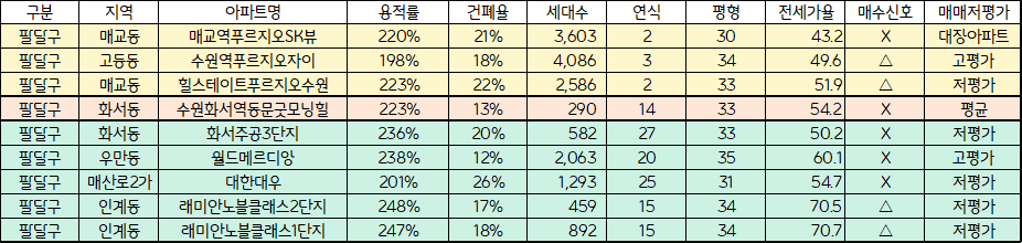 경기도 수원시 팔달구 아파트의 현재 흐름을 확인하고 성공적인 매수타이밍을 잡기 위해 24년 4분기 수원시 팔달구 아파트순위, 전세가율, 저평가아파트 등을 확인하겠습니다