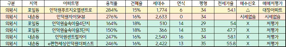 1. 의왕시 30% 이내 아파트의 현재 전세가율을 통해 전세가 거품여부를 확인하겠습니다
