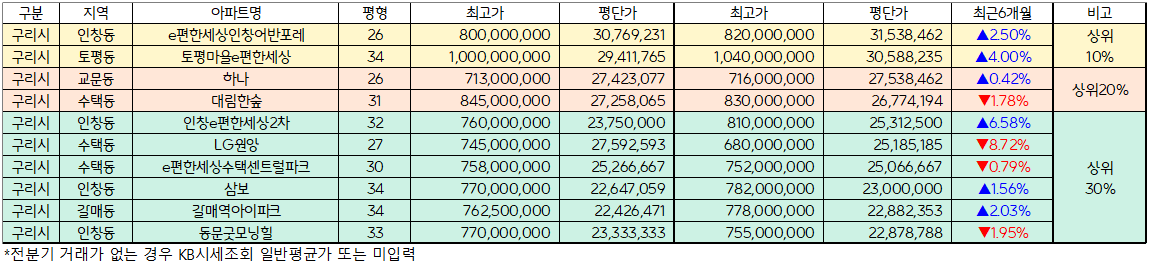 2024년 2분기 구리시 아파트 순위, 전세가율, 매매저평가 등 확인